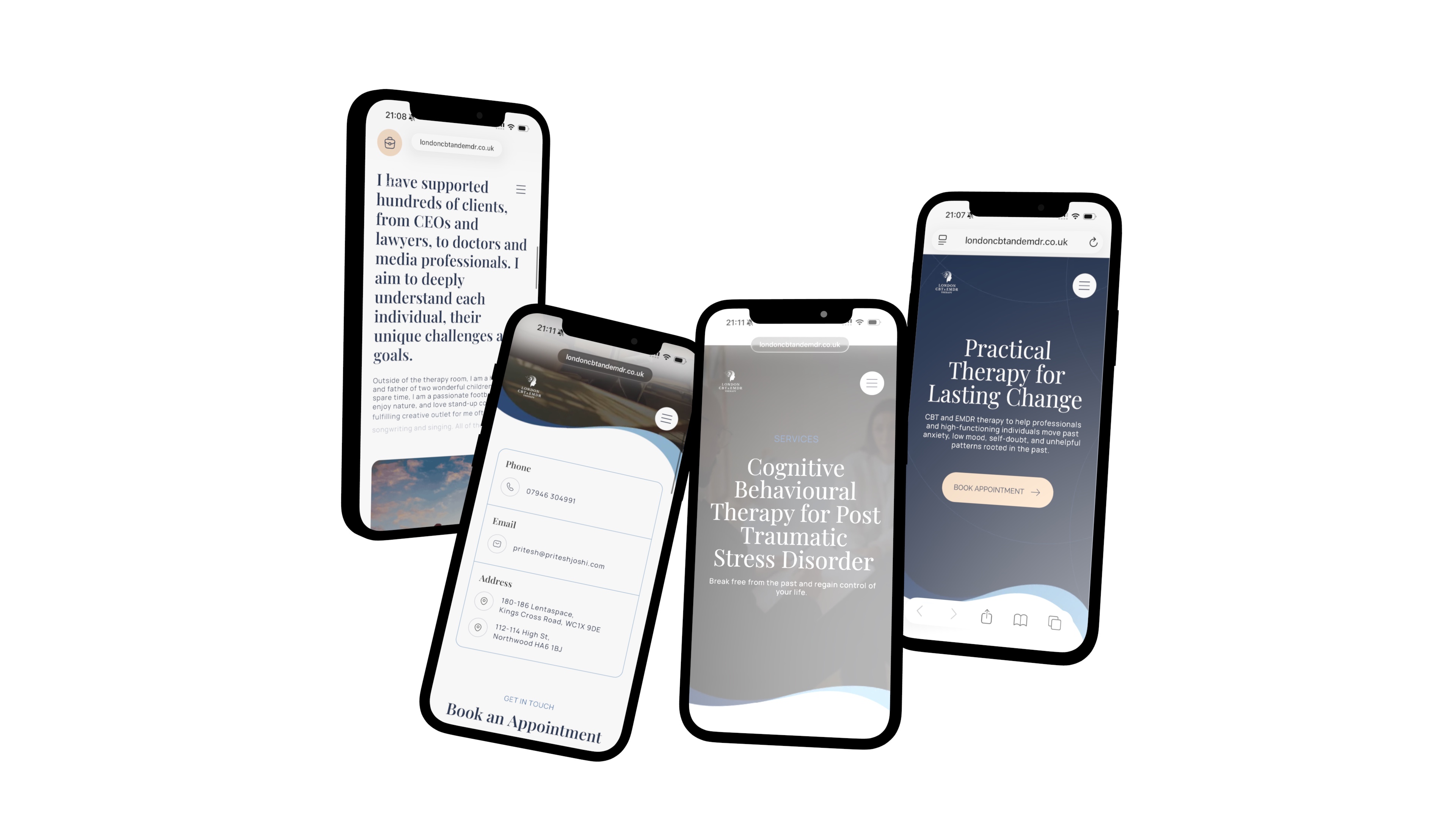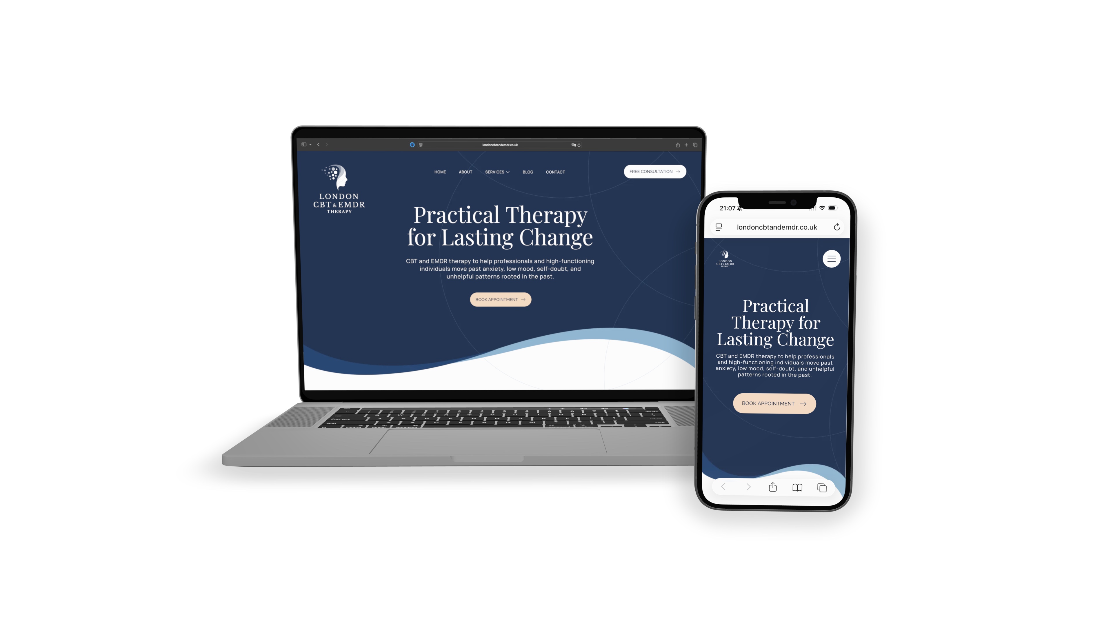 A complete website for a CBT and EMDR therapy practice based in London. The goal was to create a soft, welcoming interface that conveys professionalism and trust — essential in the mental health field. The layout combines structured information architecture with calming visual flow, ensuring visitors easily understand the offered services and feel encouraged to reach out. Smooth animations and balanced typography enhance engagement without distraction, supporting a sense of safety and confidence in the brand.